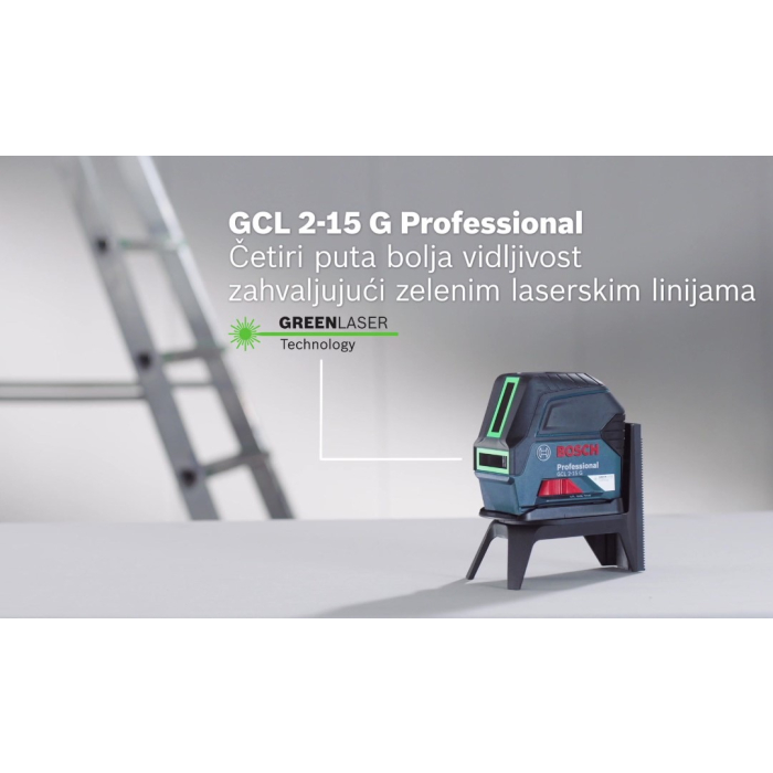 Čak do četiri puta bolja vidljivost zahvaljujući zelenim laserskim linijama i savršena svestranost – to je kombinovani laser GCL 2-15 G Professional kompanije Bosch. Dvije laserske linije omogućuju precizno okomito i vodoravno poravnanje, a crvene tačke oznake jednostavno prenošenje. Laserske je linije jednostavno poravnati oko tački oznaka sa svestranim okretljivim držačem RM 1 Professional.