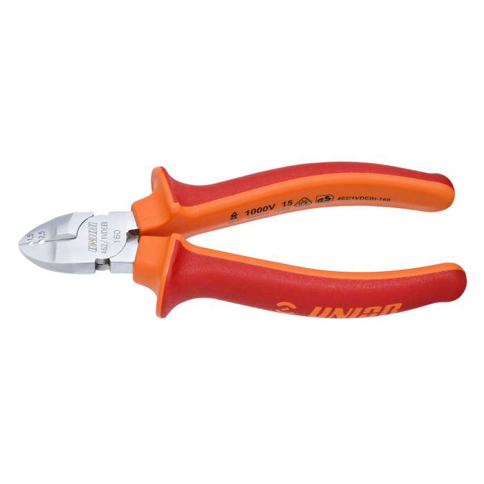 Materijal poseban alatni čelik, kovana, potpuno poboljšana i ojačana. Rezni rubovi induktivno kaljeni, čeljusti polirane. Završna obrada, kromiranje po standardu ISO 1456:2009. Robusne ručke izolirane dvokomponentnim navlakama. Izrađeno po standardu EN60900. Mogućnost skidanje izolacije električnih kablova 1,5 mm2 i 2,5mm2. Uniorov izolirani VDE alat osigurava potpunu zaštitu čak i kada se koristi pri naponu do 1000 V. Sigurnost svakog individualnog Uniorovog VDE alata temeljito se ispituje putem testova: test otpornosti na plamen, testovi izolacije i provodljivosti, test otpornosti na udar i test otpornosti žiga.