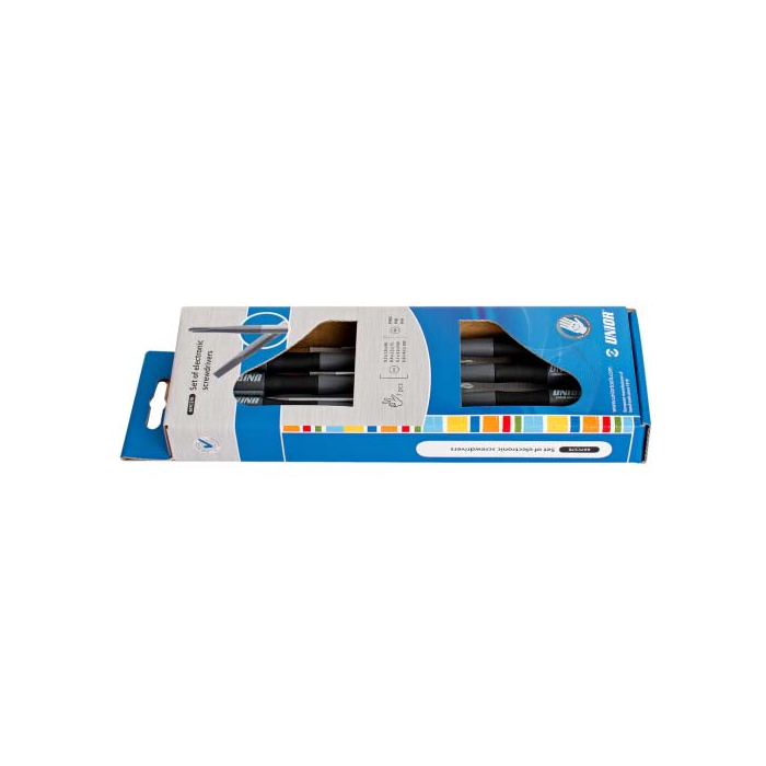 UNIOR izvijači za elektroniku u garnituri ravni+krst - ART. 607CS7E vrhunska kvaliteta materijala koji se koriste za liniju Unior odvijača dopunjena je ergonomskim dizajnom ručke koja osigurava odličan prihvat i prijanjanje odvijača u ruci.