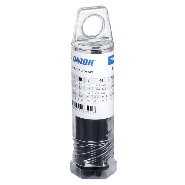 UNIOR set izvlakača polomljenih vijaka 1-5 - ART. 778/4PB pomno osmišljen dizajn i precizna izrada spriječavaju oštećenja radnih predmeta čak i pri značajnim opterećenjima. S takvim karakteristikama, Uniorov alat pravi je izbor za svakog majstora koji želi kvalitetan i dugotrajan alat.