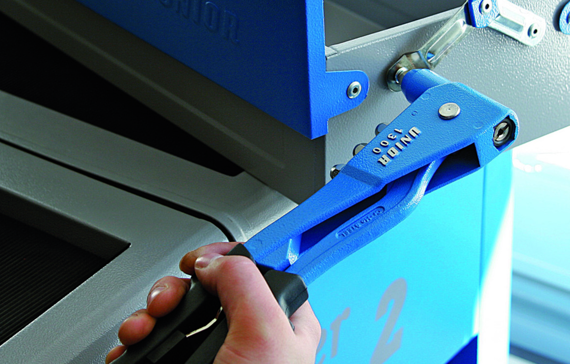 UNIOR kliješta za pop nitne 1300 alat karakterističan po svom odličnom prihvatu. Vodilice omogućuju precizno kretanje čeljusti uz ručicu za brzo kretanje. Čvrst prihvat radnih predmeta osiguran je bez rizika od povreda.