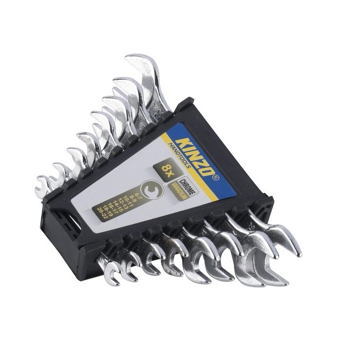 KINZO ključevi viljuškasti 6 - 22 set 8 kom idealni za svaki posao. Ovaj Kinzo set sadrži 8 visokokvalitetnih otvorenih ključeva u veličinama 6 - 22 mm. Izrađeni su od izuzetno čvrstog hrom-vanadijum čelika.