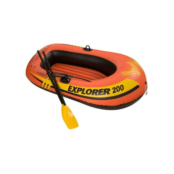 INTEX čamac na naduvavanje Explorer 200 185x94x41 za uživanje na vodi. Ima dvije vazdušne komore sa duplim ventilima zbog bezbjednosti Namijenjen je za jednu odraslu osobu i jedno dijete. Dno se naduvava radi bolje stabilnosti.