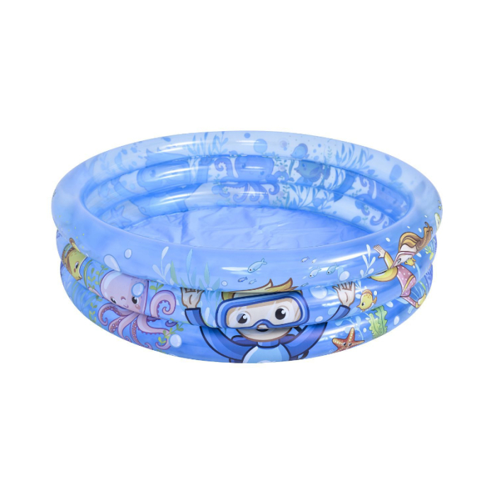 AVENLI bazen 100x23cm morski svijet 3K je bazen na naduvavanje atraktivnih boja i morskim životinjama koji donosi radost i rashađenje u ljetnjem periodu. Ima 3 zračne komore koje se lagano duvaju zahvaljujući odličnom ventilu i široke zidove za dodatnu čvrstoću. Zapremina bazena (85%): 88.5L