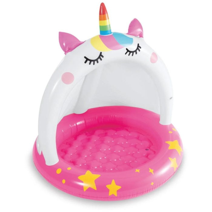 INTEX bazen dječiji Caticorn Baby Pool, super sladak dječiji bazen na naduvavanje, dizajniran za djecu od 1 do 3 godine, Vaša djeca će imati priliku da se rashlade na suncu zahvaljujući integrisanom suncobranu.Približna naduvana veličina: 1,02 x 1,02mPribližan kapacitet vode (na osnovu preporučene maksimalne dubine vode oko 13 cm): 45 lUgrađeni suncobranMekani pod na naduvavanjeZakrpa za popravku uključenaRaspon uzrasta: 1-3 godine