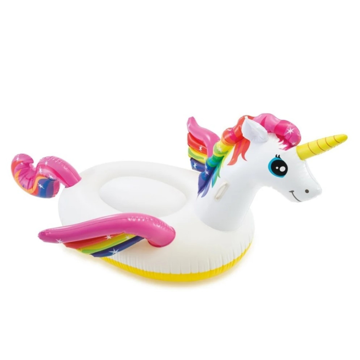 INTEX dušek za vodu - Konjić, šarenog i magičnog karaktera, ova bova će Vas dobro raspoloženi i prevesti u nove zamišljene avanture! Možete se potpuno sigurno opustiti zahvaljujući dvije integrisane ručke na Intex jednorogu na naduvavanje.Dimenzije: 198 x 140 x 102 cm (d x š x v)Maksimalna težina: 40 kgDob: 3 godine +Broj vazdušnih komora: 2Materijal: PVC i vinil debljine 0,30 mm