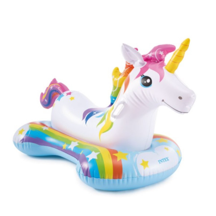 INTEX dušek za vodu Magical jednorogi konjić, šarenog dizajna i udobnosti garantuje pravu ljetnu avanturu. Sati zabave očekuju Vaše mališane od 3 godine. Oni će se suočiti s vrućim sunčanim danima u potpunoj sigurnosti zahvaljujući dvije čvrste ručke integrisane na ovaj dušek na naduvavanje.Dimenzije: 163 x 86 cmMaksimalna težina: 40 kgDob: 3 godine +Broj vazdušnih komora: 2Materijal: PVC i vinil debljine 0,30 mm