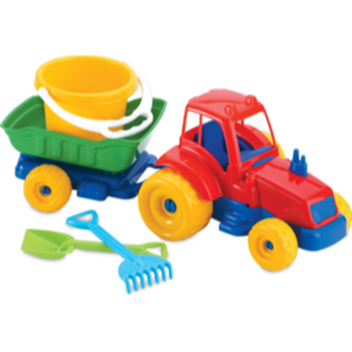 DEDE igračka traktor je odlična igračka za pjesak i plažu. Napravljana od kvalitetene plastike koja je robusna te nema oštrih ivica. Dolazi sa dodatnim grabljicama,kantom i lopaticom.