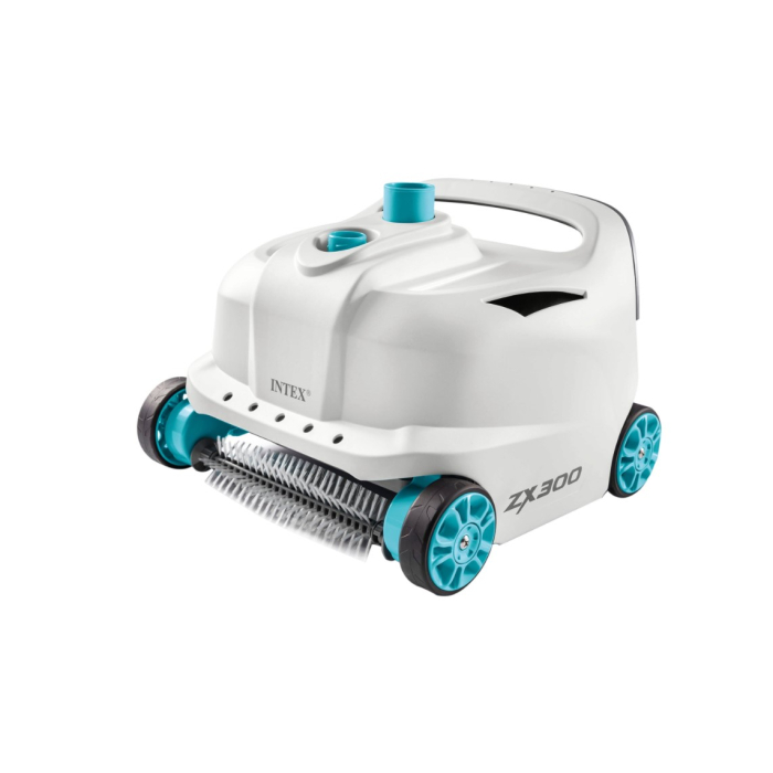 INTEX usisivač robot za bazen ZX 300 čisti dno i zidove bazena uz snažnu usisnu snagu i rotirajuće dvostruke četke koje efikasno uklanjaju prljavštinu. Fina mrežica filtera skuplja i najsitnije čestice, a posuda zapremine 1,8 litara omogućava duži rad bez čestog pražnjenja. Priključuje se na vanjski filter sistem sa protokom od 6056 do 13248 L/h. U setu dolazi crijevo dužine 6,5 m i adapter za FI32/38 mm