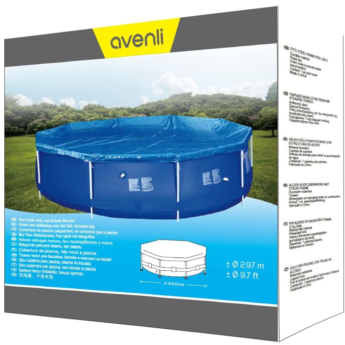 AVENLI prekrivač idealan za bazene okruglog čeličnog okvira prečnika 300cm. Efikasno štiti bazen od prvljavština, a ujedno i spriječava isparavanje vode. Napravljena od polipropilena i vrlo je otporna na vremenske uslove. Isporuka uz praktično uže za pričvršćivanje.