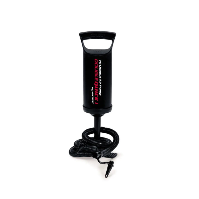 INTEX pumpa za bazene Double Quick I, izuzetno brzo puni lopte, jastuke, čamce ili slične proizvode. Može se spojiti na ventile različitih veličina, budući da ima nekoliko priključaka.Dimenzije: 10 x 10 x 30 cmTežina: 0,4 kg