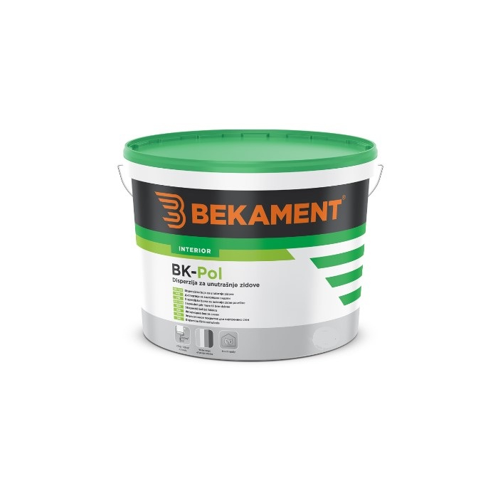 BEKAMENT disperzija za unutrašnje zidove BK-POl je disperziona boja na bazi visokokvalitetne polimerne emulzije, namijenjena za unutrašnju upotrebu. Posjeduje odličnu pokrivnu moć i paropropusnost, otporna na suvo brisanje.