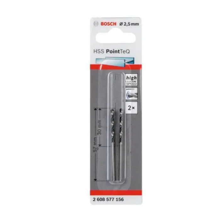 BOSCH burgija 2,5 mm (2 kom) HSS PointTeq za metal namijenjena je za precizno i brzo bušenje u metalu, čeliku i obojenim metalima. PointTeq vrh omogućava lako centriranje bez proklizavanja i smanjuje potreban pritisak pri radu. Izrađena od HSS čelika, pruža visoku izdržljivost i dug vijek trajanja. Pogodna je za profesionalnu i hobi upotrebu.