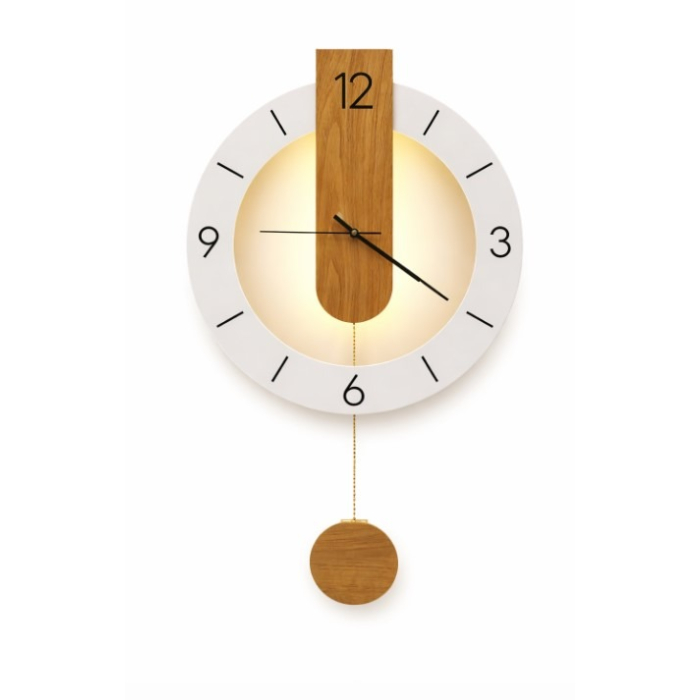 DECOSTRONG sat zidni sa svjetlom 7741 FI40 odlikuje moderan dizajn sa kombinacijom prirodnih i savremenih elemenata koji unosi toplinu i eleganciju u svaki prostor. Integrisano LED osvjetljenje pruža prijatno ambijentalno svjetlo, uz mogućnost izbora između bijele i toplo žute nijanse, kao i opciju korištenja bez uključenog svjetla. Kvalitetna izrada i precizan mehanizam osiguravaju dugotrajnost, pouzdan rad i jasan prikaz vremena.