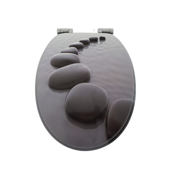 DECOSTRONG WC daska H032 Soft Close donosi moderan i smiren izgled kupatilu zahvaljujući motivu kamenčića i vode. Izrađena je od kvalitetnog i izdržljivog materijala koji osigurava dugotrajnu upotrebu i jednostavno održavanje. Soft Close mehanizam omogućava tiho i lagano spuštanje poklopca, dok stabilni metalni okovi osiguravaju sigurno pričvršćivanje. Materijal: MDF