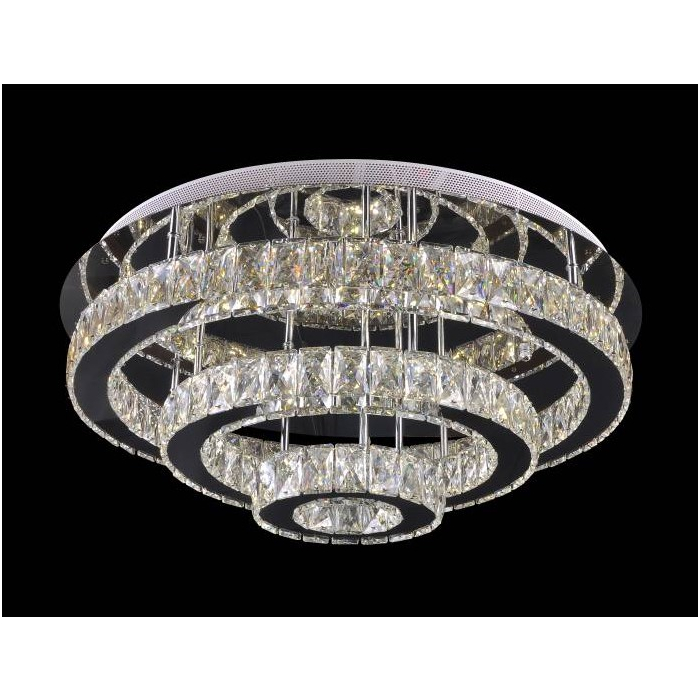 SPARX plafonjera LED Miracle I 86W za dnevnu sobu sa 3-slojnim prstenom koji prikazuje elegantan i savremen dizajn. Napravljena od reflektujućeg nerđajućeg čelika i K9 kristala sa finom izradom, koji pružaju čvrst i izdržljiv kvalitet.Dimenzije: 600 x 250 mm (prečnik i visina)Snaga: 86WBoja svjetla: 3000 - 6000 K