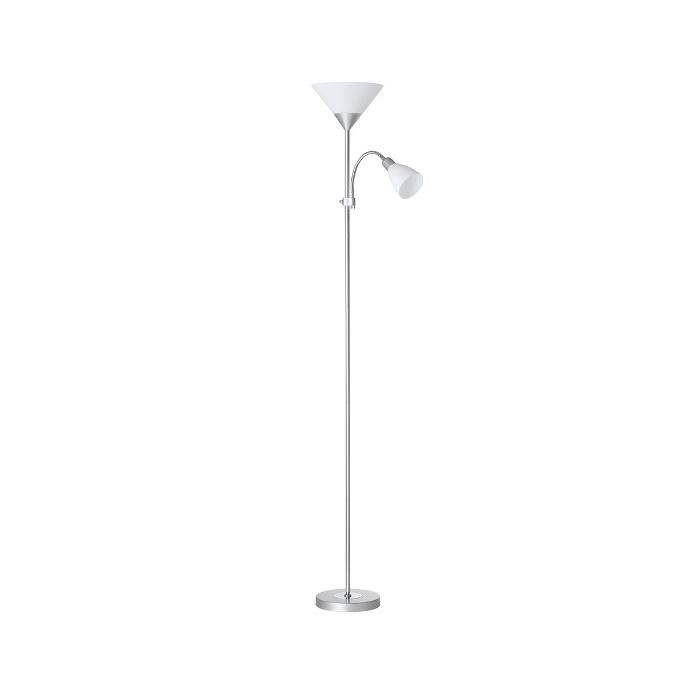 SPARX Home podna svjetiljka E27+E14 SILVER MATT, sa odvojenim prekidačima za uključivanje i isključivanje i pametnim dizajnom, osjećaćete se kao da imate dve lampe u jednom paketu.Visina svjetiljke: 180 cmDužina kabla: 150 cmGrlo: 2X E27Boja: Silver