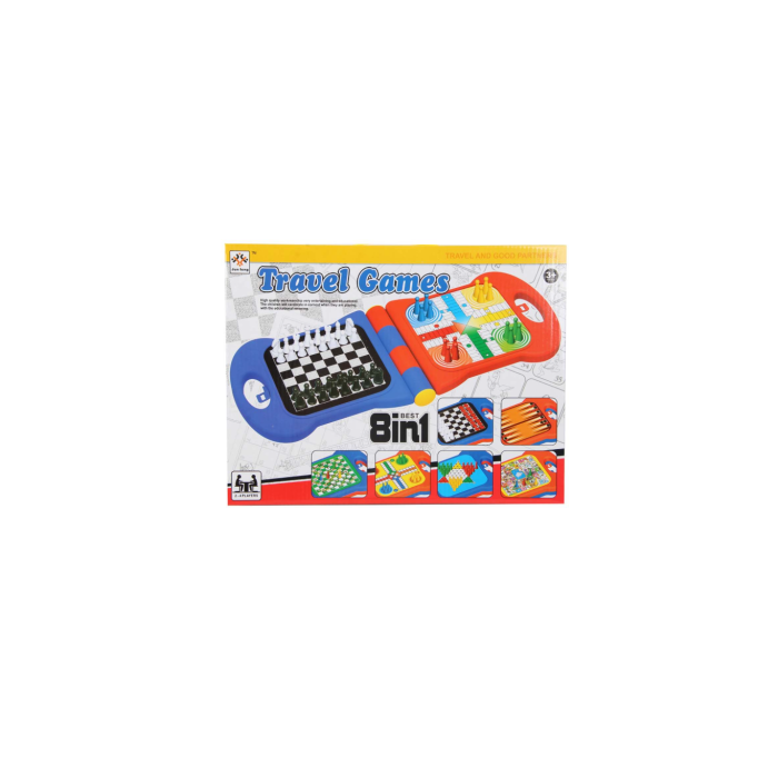 DRUŠTVENE igre 8u1 je set koji sadrži osam različitih klasičnih igara u jednom pakovanju. Obuhvata igre poput šaha, dame, ludo, zmije i merdevine i drugih društvenih igara koje podstiču zabavu i takmičarski duh. Set je namijenjen za porodičnu i dječiju igru, razvija logiku, pažnju i strategijsko razmišljanje, idealan za zajedničko druženje kod kuće ili na putovanju.