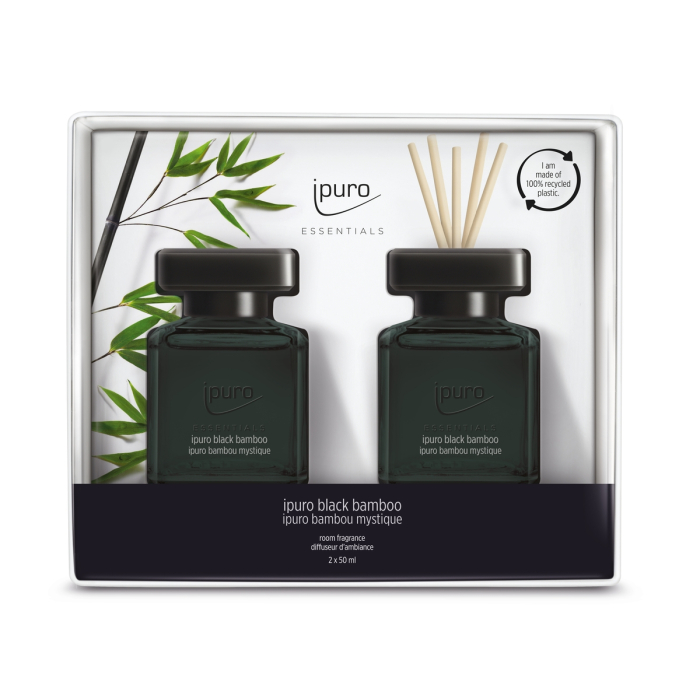 ULJE mirisno sa štapićima Ipuro set 2x50ml Black Bamboo je miris snažne, zelene svježine u kombinaciji sa drvenastom nijansom. Gornje note mirisa: jasmin, limun. Srce mirisa: jabuka, dinja. Donje note mirisa: bijeli mošus, amber.