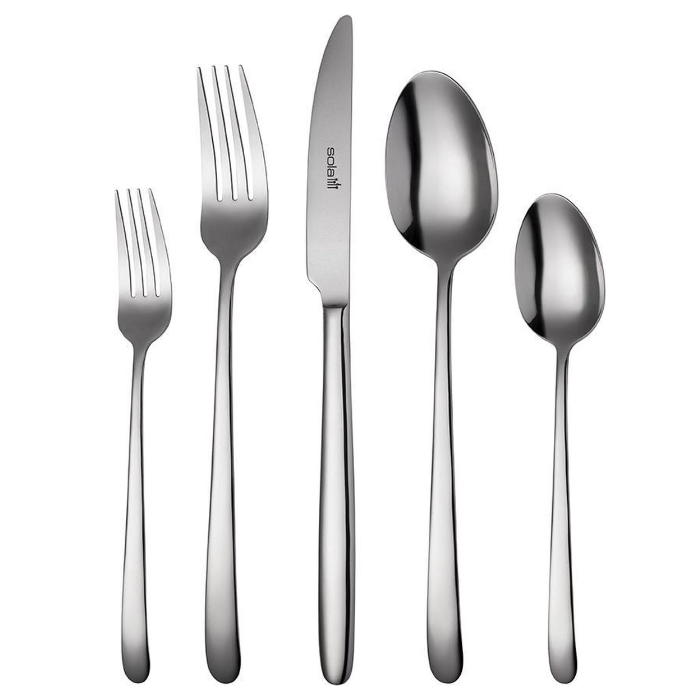 Visokokvalitetni materijali i inovativni dizajn čine ovaj pribor za jelo idealnim za svaku priliku. Svaki komad ima čvrstu i tešku dršku koja nudi maksimalnu udobnost, uz moderan dizajn, a kao plus, može se prati u perilici za suđe. Pogodan je kako za intenzivnu upotrebu u restoranima tako i za kućne postavke stola.8 noževa8 kašika 8 viljuški8 kašika za desert 8 viljuški za desert 8 noževa za desert 8 kašika za koktel/sladoled 8 viljuški za koktele