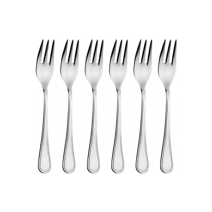 VILJUŠKE set Bugatti England 6/1 sastoji se od 6 viljuški za desert sa 3 vrha. Engleski model sa sjajnom završnom obradom od nehrđajućeg čelika 18/10. Može se prati u mašini za suđe. Dimenzije proizvoda: 21 x 18 x 3 cm.