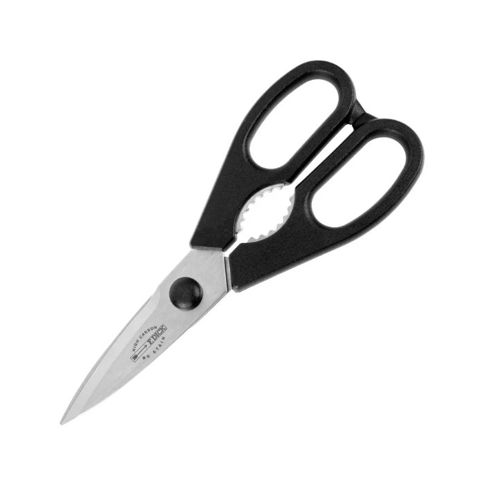 DICK kuhinjske makaze sa integrisanim otvaračem dužine 20 cm praktičan su i multifunkcionalan kuhinjski alat. Izrađene od visokokvalitetnog nerđajućeg čelika, obezbjeđuju dugotrajnu oštrinu i precizno rezanje različitih namirnica. Integrisani otvarač dodatno povećava funkcionalnost, omogućavajući lako otvaranje flaša ili pakovanja. Ergonomske drške pružaju udoban i siguran hvat, smanjujući zamor pri radu. Izdržljive, pouzdane i jednostavne za održavanje, odličan su izbor za svaku kuhinju.