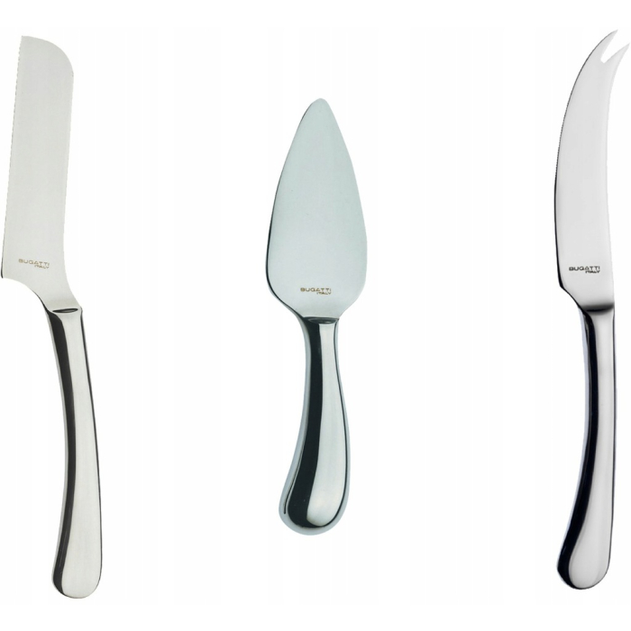 ESCAJG set Bugatti Settimocielo za sir 3/1 idealan za ljubitelje sireva. Među ova tri noža ćete naći ono što vam treba. Noževi su smješteni u krasnu poklon kutiju, što ovaj set čini i idealnim poklonom. Set uključuje nož za tvrdi sir, lopaticu za sir i nož za meki sir.