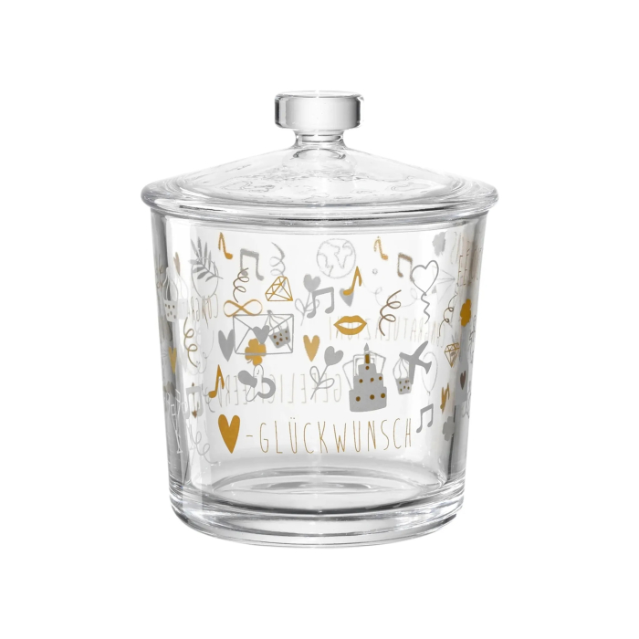 LEONARDO Staklena posuda sa poklopcem romantičnog dizajna je savršena za poklon ili jednostavno za čuvanje keksa i kolačića. Nije preporučljivo za pranje u mašini za suđe.Dimenzije: 12,8 x 12,8 x 16 cm.