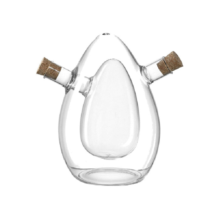 SET za ulje i sirće-kom - Staklena posuda za ulje i sirće zanimljivog oblika. Savršeno doziranje obezbeđuju dva sipača, koja su zatvorena malim plutom. Odlična ideja za poklon. Dolazi u gift pakovanju. Dimenzija: 15.7 x 11 x 11 cm. Održavanje: ručno pranje.