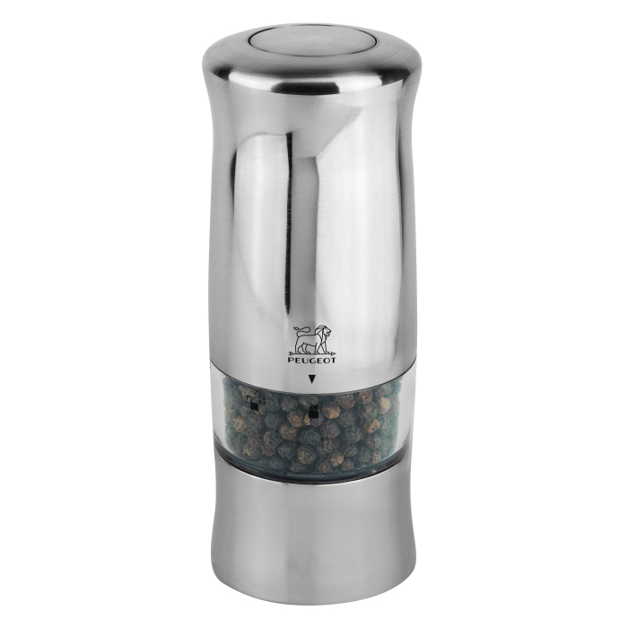 MLIN za biber Peugeot Zeli zahvaljujući kompaktnoj veličini od 14 cm nudi udobno rukovanje jednom rukom. Napravljen od ABS-a, Zeli ima završnu obradu od brušenog nehrđajućeg čelika. Podesiva grubost mljevenja. Svjetlo se pali ispod prilikom mljevenja. Dolazi sa 6 baterija i 1 rezervnom sijalicom.