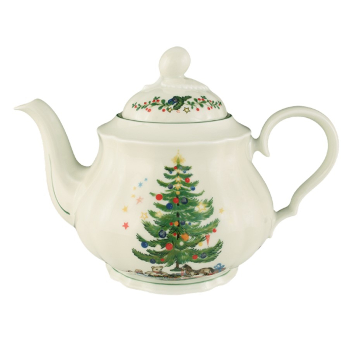 SELTMANN novogodišnji čajnik motiv drvce, posebnost ovog porculana je njegova nježna boja slonovače, koja se lijepo usklađuje sa graciozno zakrivljenim linijama oblika. Klasičan oblik čajnika, skladno će se uklopiti u svaku kompoziciju, dodajući note nostalgije i topline u svaki kutak Vašeg doma.Čajnik se može prati u mašini za pranje suđe.Zapremina čajnika: 1,10 L