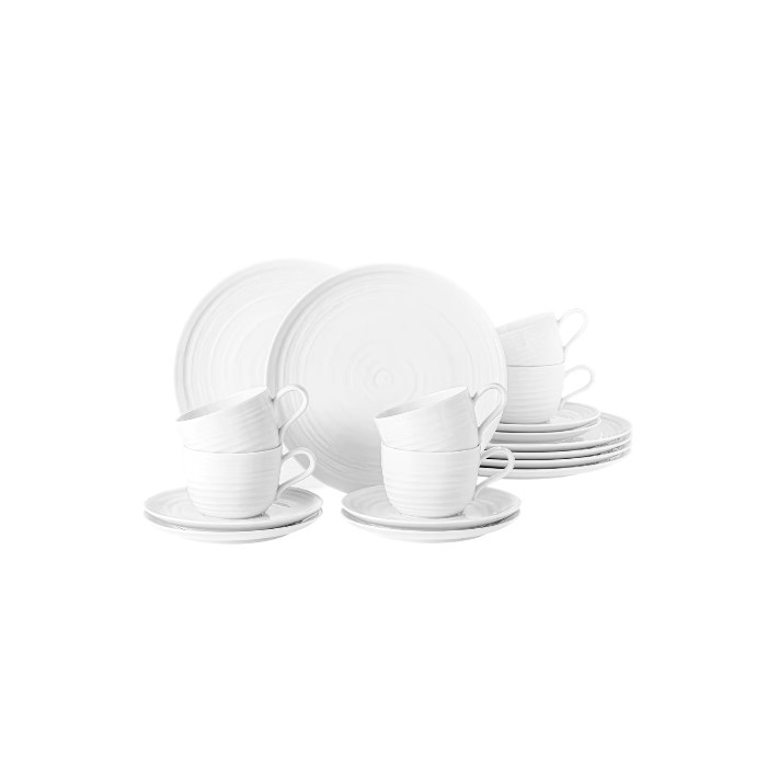 SELTMANN set šolja i dezertnih tanjira sadrži set od 18 komada koji uključuje 6 šolja i 6 dezertnih tanjira. Ovaj elegantni set, izrađen od visokokvalitetnog porculana, idealan je za serviranje kafe, čaja i deserta. S čistim bijelim dizajnom, set je jednostavan, ali sofisticiran, te se lako uklapa u svaki ambijent. Lako se održava, otporan je na oštećenja i pruža dugotrajnu funkcionalnost, savršen za svakodnevnu upotrebu ili posebne prilike.