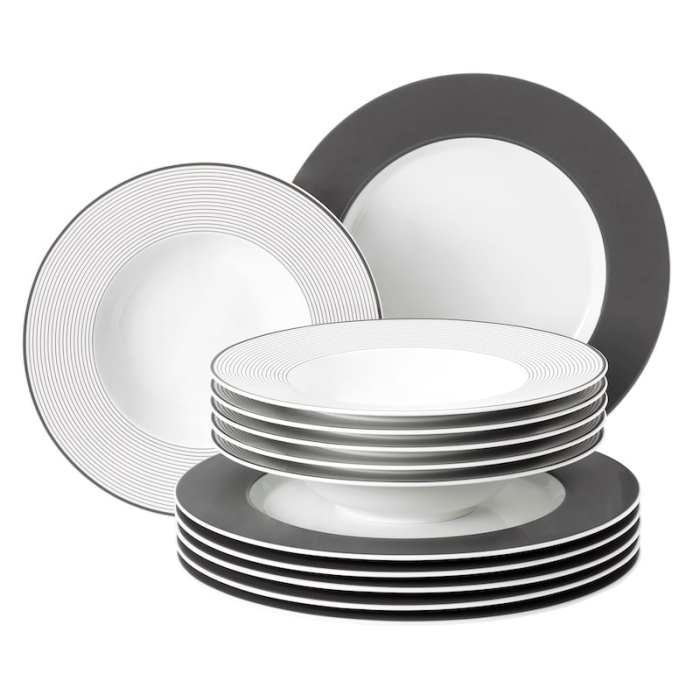 TANJIRI set Seltmann Weiden No Limits 12/1 porculanski set koji se sastoji od 6x plitki tanjir (fi 28 cm), 6x duboki tanjir (fi 23,5 cm). Uz No Limits iz Seltmann Weidena nema granica za uživanje. Proizvedeno u Njemačkoj. Pogodan za pranje u mašini za suđe i za mikrotalasnu pećnicu.