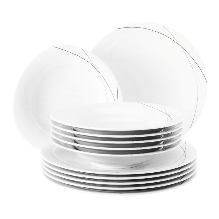 TANJIRI set Seltmann Weiden Trio Highline 12/1 porculanski set koji se sastoji od 6x plitki tanjir (fi 28 cm), 6x duboki tanjir (fi 23,5 cm). Vrlo lijep dekor u uobičajenom Trio dizajnu iz Seltmann-Weidena. Priuštite svojim gostima prekrasnu, jedinstvenu privlačnost za oči.