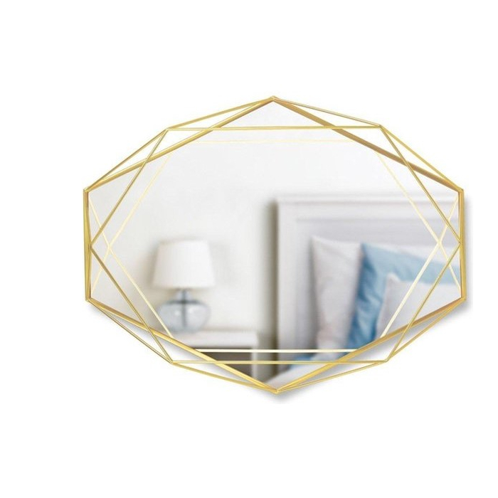 UMBRA ogledalo prizma je izuzetno elegantan komad koji će privući pažnju svojom jedinstvenom formom i luksuznom završnom obradom. Oblik prizme donosi moderan i intrigantan element u prostoriju, ističući se svojom originalnošću. Zlatna boja dodaje sofisticiranu toplinu i sjaj veoma modernom komadu. Ovo ogledalo bi bilo savršeno u dnevnoj sobi, hodniku ili bilo kojem drugom prostoru koji zahtijeva dozu luksuza i savremenog stila.Dimenzije: 57x43x9cm