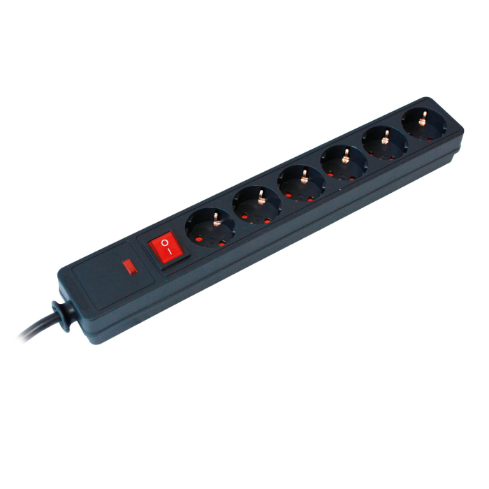 COMMEL kabal produžni sa prenaponskom zaštitom je produžni kabal sa prenaponskom zaštitom i šesterostrukom utičnicom dužine 1,5 metar.kabal je gumirani presjeka 3x1,5mm max.snage 3500W 16A.