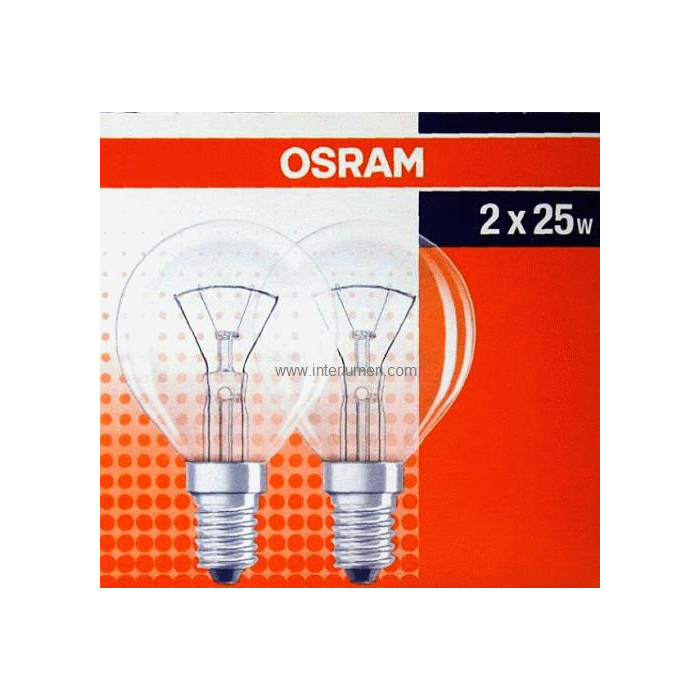OSRAM sijalica E14 25W je sijalica bistra sa žarnom niti snage 25W, 210lm.Grlo sijalica je E14, a radni vijek sijalice je 1000h.U pakovanju su 2 sijalice.