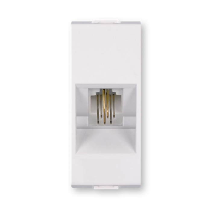 ALING CONEL utičnica telefonska 4 pina 1M RJ12 se ugradnja u noseću prirubnicu utiskivanjem.Priključak za dve parice (linija + terminal). Dimenzije (d, v, š): 22.2mm x 50mm x 31mmModul: 1M