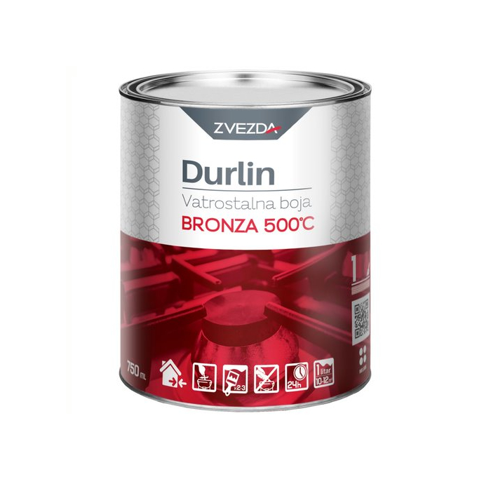 ZVEZDA vatrostalna bronza Durlin 500C 0,75l premaz za zaštitu metalnih površina izloženih povišenim temperaturama (izduvni lonci automobila, čunkovi, gvozdeni stubovi, dimnjaci, felne, itd.).
