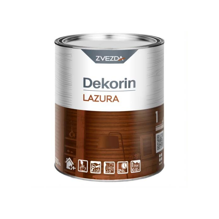 ZVEZDA lazura Dekorin ebanovina 0,75l - štiti drvo od klimatskih uticaja i oplemenjuje ga. Pogodna je za sve vrste drveta i namijenjena je za vanjsku i unutrašnju upotrebu.