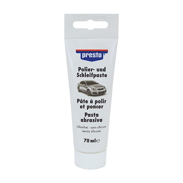 PRESTO polir pasta 70 ml za uklanjanje ogrebotina na automobilu. Pogodna za ručno ili mašinsko poliranje. Jednostavno i lako uklonite sitne ogrebotine sa automobila i osvježite lak.