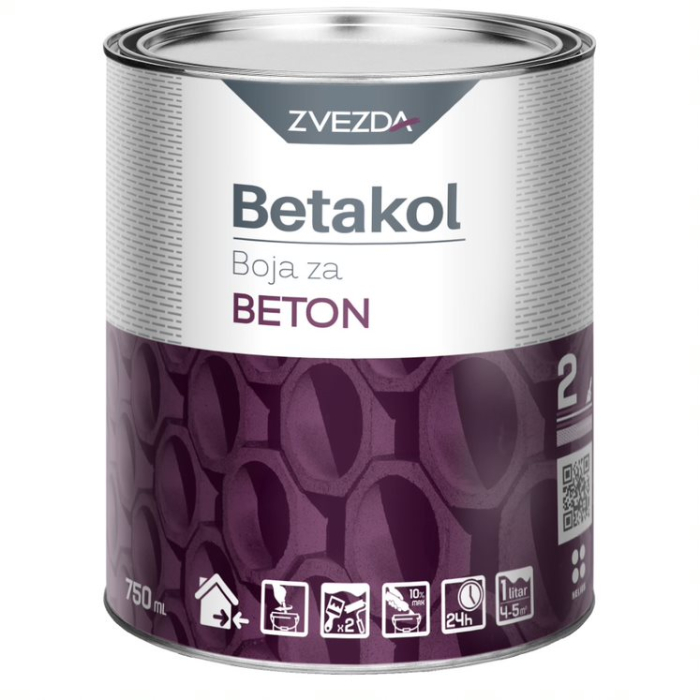 ZVEZDA boja za beton Betakol siva RAL 7032 0,75l akrilni premaz na bazi organskih rastvarača za zaštitu i dekoraciju betonskih površina koje nisu izložene jakom mehaničkom uticaju i dejstvu agresivnih supstanci (podovi, terase, garaže, podrumi).