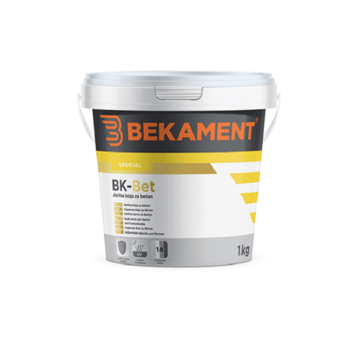 BEKAMENT boja za beton BK zelena 1kg je akrilna boja namijenjena za dekorativnu zaštitu betonskih i cementnih površina. Karakteriše je odlična vodoodbojnost i adhezija na cementne podloge. Temperatura primjene: +5°C do +30°C. Ne raditi po direktnom suncu, kiši, ni jakom vjetru.