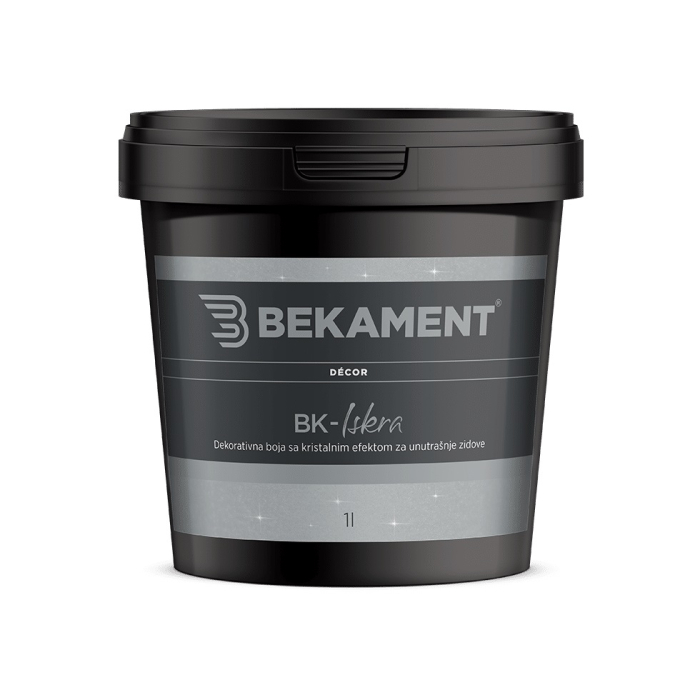 BEKAMENT dekoracija Iskra BK 1l specijalna akrilna boja namenjena za dekoraciju unutrašnjih površina. Brilijanta finalna struktura potiče od sjajnih kristala koji daju pun efekat boje. Odgovarajuće podloge su sve površine izravnate BK-GletEx Acryl-om ili BK-GletEx Universal-om.