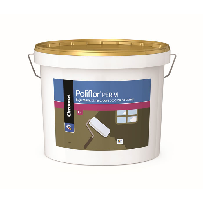 CHROMOS poliflor perivi boja za zid 5l je disperziona visokopokrivna boja otporna na pranje, namijenjena za zaštitu i dekoraciju unutarnjih zidnih površina stambenih prostora, izloženih jačim opterećenjima, kao što su hodnici, dječje sobe, kuhinje, kupaonice i sl. otporna na pranje vodom.