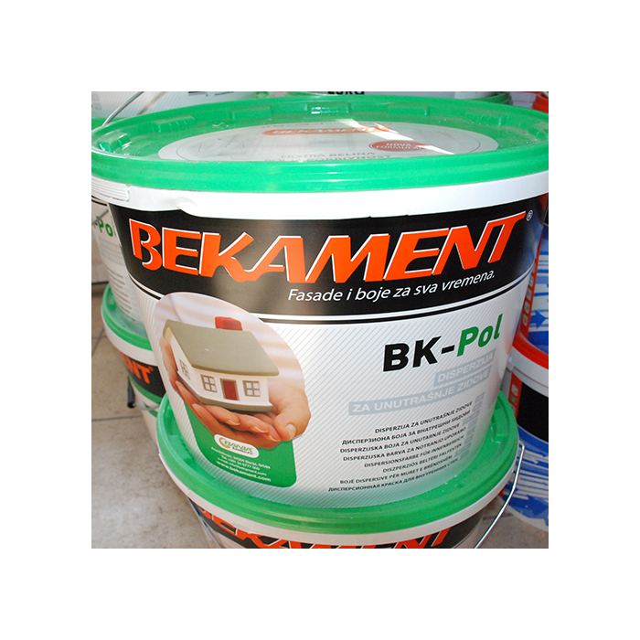 BEKAMENT disperzija za unutrašnje zidove pol 10/1 unutrašnja disperzija za zidove je disperziona boja na bazi polimerne disperzije visoke , namijenjena unutrašnjoj upotrebi. Ima dobru pokrivnu moć i paropropusnost, otporna na suvo brisanje. Može se tonirati u svjetliji ton preko 500 nijansi.Pakovanje: 10 kg