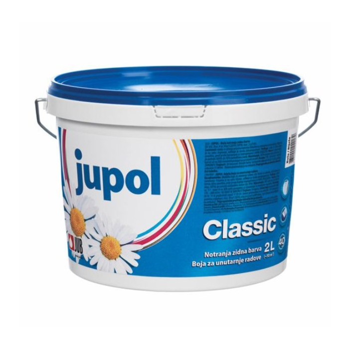 JUB Jupol Classic unutrašnja boja je zidna boja kojoj vjerujemo preko 50 godina. Upotrebljava se za dekorativnu zaštitu zidova i plafona u stambenim i poslovnim zgradama. Poboljšanu unutrašnju boju JUPOL Classic možete razrijediti s vodom do 15% te sa njom postižete ljepši nanos i elastičnost boje bez vidljivih tragova valjka. Površina prebojena sa JUPOL Classic ima finiju strukturu i ljepši izgled filma boje.