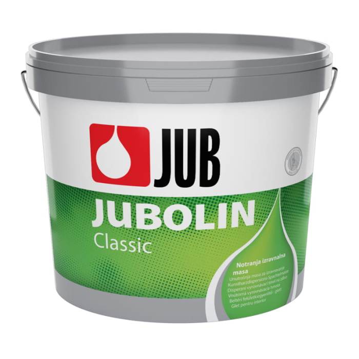 JUB jubolin gotova glet masa 3kg je tvornički pripremljena masa za izravnavanje unutrašnjih, zidnih i stropnih površina. Dobar prihvat na krečno, krečno cementne, pa i na fine cementne podloge i gips kartonske ploče. Zaglađivanje nemalterisanih betonskih površina, neofasadiranih zidova.