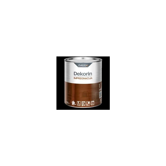 ZVEZDA impregnacija za drvo Dekorin 0,75l impregnacija za preventivnu zaštitu drveta od truljenja i propadanja. Koristi se u sistemu sa DEKORIN Lazurom i DEKORIN Top Lazurom.