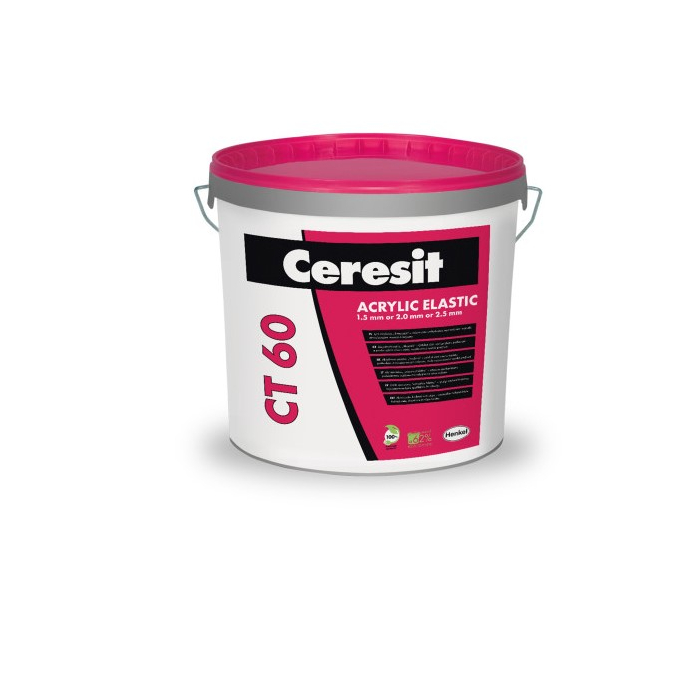CERESIT akrilna fasada CT60 – Dekorativna fasadna žbuka na akrilnoj bazi sa strukturom „zaribane“ žbuke, namijenjena za spoljašnju i unutrašnju upotrebu. Zahvaljujući visokoj elastičnosti i otpornosti na udarce, odlično podnosi temperaturne promjene i mehanička opterećenja. Vodoodbojna i paropropusna formula sprječava prodiranje vlage, dok široka paleta boja omogućava prilagođavanje različitim estetskim zahtevima